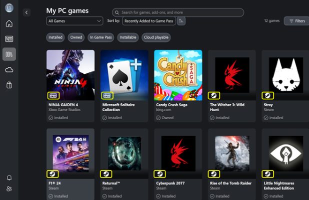 Game Library Terpadu: Semua game dari berbagai platform, termasuk Xbox Game Pass, Steam, Battle.net, Epic Games, dan peluncur game lainnya, kini telah digabungkan ke dalam satu lokasi yang mudah diakses. Pengguna tidak perlu lagi berpindah-pindah antara platform yang berbeda untuk menjalankan game favorit mereka.